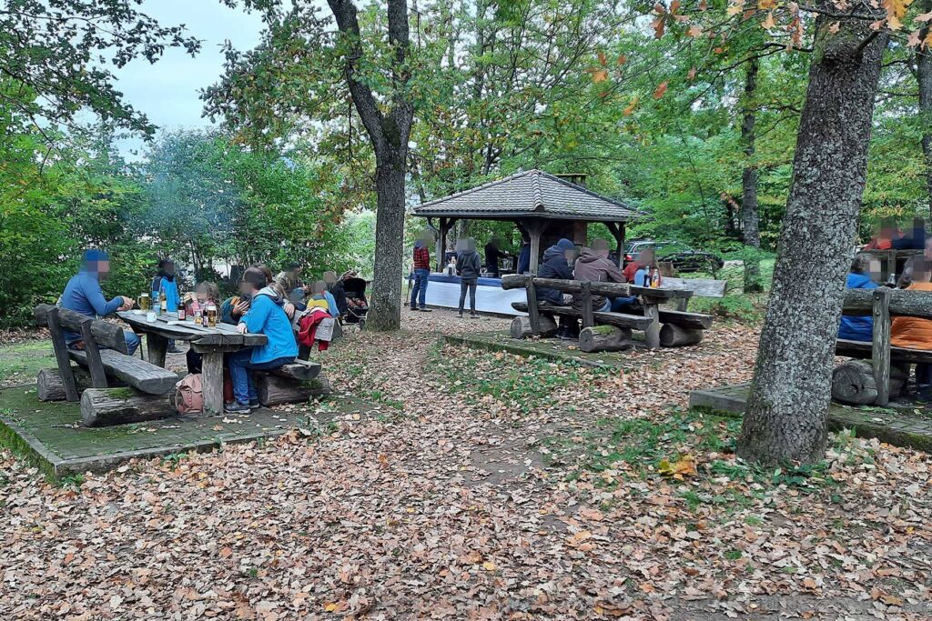 Vor der Wanderung waren wir schon extrem erfreut über die zahlreichen Besucher, die bereits den leckeren Pichelsteiner Eintopf aus dem Feuerkessel oder die Kürbiscremesuppe oder Kaffee und Kuchen genossen.